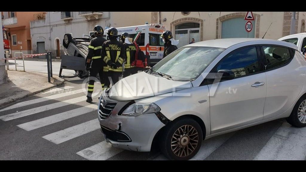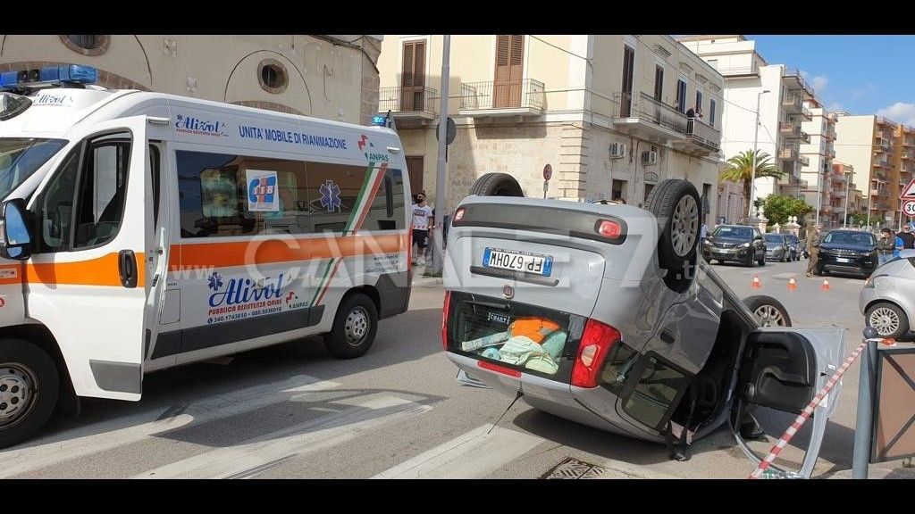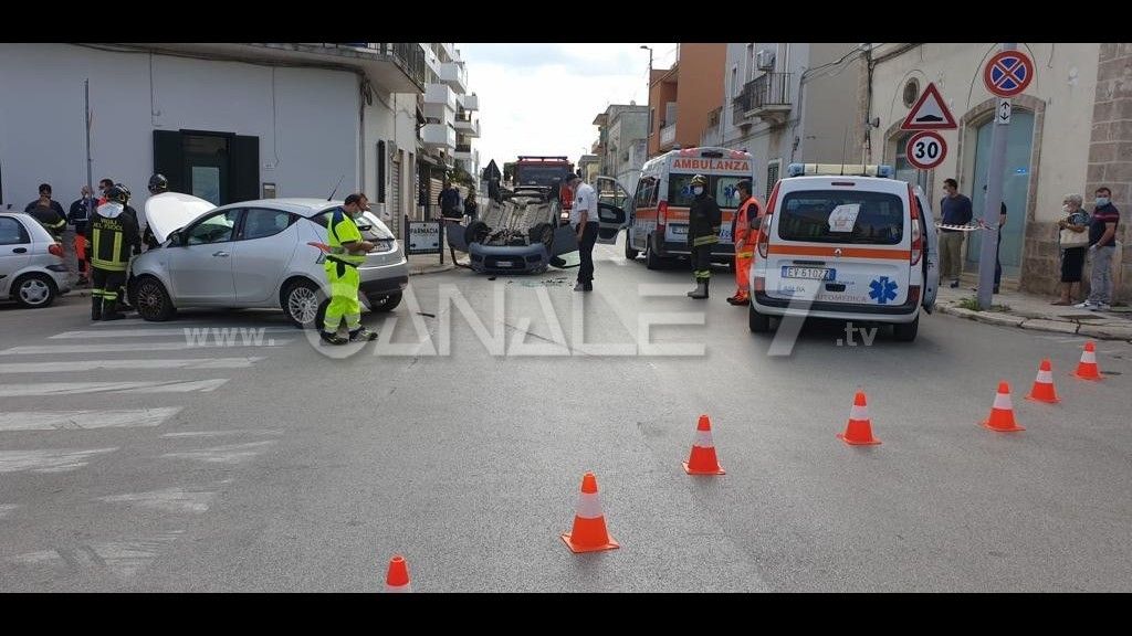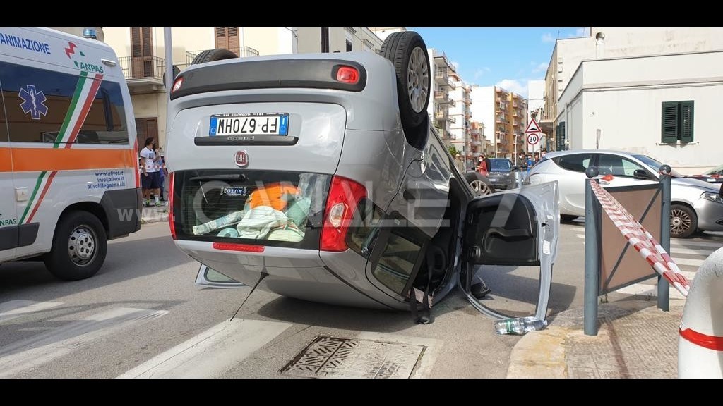 MONOPOLI - E' di due feriti, per fortuna non gravi, il bilancio di un incidente stradale avvenuto questa mattina, domenica 11 ottobre, in via Oberdan, angolo via Cappuccini, a Monopoli. A scontrarsi una Lancia Musa (proveniente proprio da via Cappuccini) e una Fiat Panda (che percorreva via Oberdan direzione Fasano). L'urto è stato violentissimo tanto che la Fiat Panda si è ribaltata. I due conducenti sono stati immediatamente soccorsi da alcuni automobilisti di passaggio in attesa delle ambulanze del 118 intervenute nel giro di qualche minuto. Il conducente della Fiat Panda, un 56enne monopolitano, è stato condotto all'ospedale "San Giacomo" per accertamenti mentre quello della Lancia Musa, un 25enne anch'esso di Monopoli, visibilmente scosso, è stato inizialmente curato sul posto ma anche lui è stato poi portato al nosocomio monopolitano. Sul luogo dell'incidente si è anche portata una squadra dei vigili del fuoco del distaccamento di Monopoli mentre alla Polizia locale il compito di rilevare il sinistro. Il traffico ha subito notevoli rallentamenti con la viabilità deviata su arterie alternative.