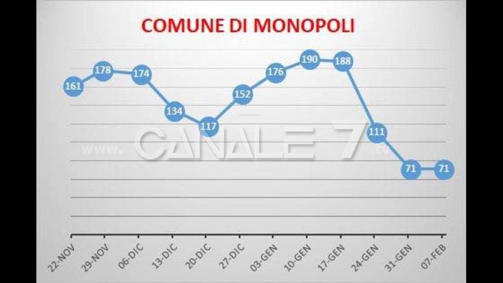 MONOPOLI - Il sindaco Angelo Annese, fa il punto della situazione Covd in città, con l'ausilio dei grafici: " Come ogni settimana, con un giorno di ritardo, sono qui a comunicarvi i dati più specifici dei casi di coronavirus nella nostra città. L’elenco aggiornato a ieri riporta 71 cittadini positivi, così suddivisi: