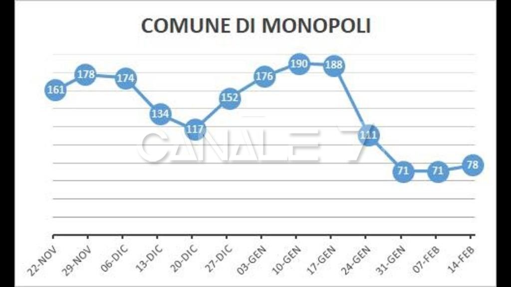 Monopoli – Il sindaco Angelo Annese informa che il numero dei positivi da Covid- 19 in città è di 78 persone. Si tratta di 41 donne e 37 uomini.