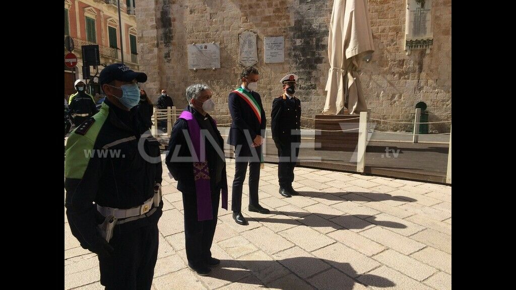Oggi 18 marzo alle 11.00 in punto l’Italia si è fermata per un momento di raccoglimento e di commozione in ricordo della fase più drammatica per il nostro Paese dall’ultimo dopoguerra con le oltre 100mila vittime dovute alla pandemia da Sars Cov2. E purtroppo il dramma è ancora in corso. A Bergamo, epicentro della tragedia durante la prima ondata della scorsa primavera, si è svolta la cerimonia di commemorazione al Cimitero monumentale, alla presenza del presidente del Consiglio Mario Draghi. Palazzo Chigi ha disposto l’esposizione a mezz’asta delle bandiere nazionale ed europea in tutti gli edifici pubblici del Paese. Ed anche il Comune di Monopoli ha aderito alla prima giornata nazionale delle vittime Covid, indetta dall’Anci e in terra di Bari promossa dalla Città Metropolitana, ricordando un altro tributo di vittime da Covid in città con 53 decessi. Un minuto di silenzio si è svolto davanti a Palazzo di Città, alla presenza del sindaco Angelo Annese. Don Peppino Cito, rettore della Basilica Cattedrale con il mesto rintocco delle campane ha presieduto al momento di preghiera.