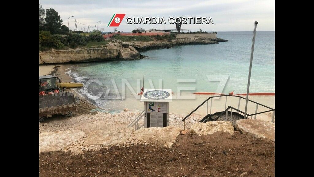 In particolare, il personale del Nucleo Operativo in azione, appurato che i lavori in corso, peraltro autorizzati dal Comune di Monopoli e dalla Città Metropolitana di Bari, erano finalizzati ad eseguire un intervento di messa in sicurezza e ripristino dell’agibilità del costone a seguito del crollo della falesia avvenuto nel febbraio dello scorso anno, constatavano che nel realizzare un piano di manovra per mezzi pesanti (un escavatore cingolato e una ruspa gommata) si stava operando un getto in mare di frammenti di roccia sedimentaria calcarea di piccole dimensioni in palese difformità rispetto a tutte le prescrizioni imposte dagli Enti locali che, invece, avevano previsto la posa di massi di grandi dimensioni al fine di evitare l’intorbidimento dell’acqua e consentire una rimozione più agevole degli stessi al termine dei lavori.