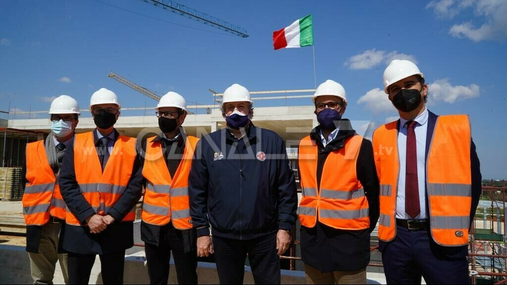 MONOPOLI - Il Tricolore sventola sul tetto del nuovo Ospedale di Monopoli-Fasano. Le maestranze hanno rinnovato stamane questa antica usanza detta “capocanale”, come da tradizione dei piccoli e grandi cantieri edili, per la quale issare la bandiera nazionale – oltre ad essere di buon auspicio - segna la posa dell’ultimo solaio e la conclusione delle opere strutturali, con cui il corpo di fabbrica dell’ospedale in costruzione acquista la sua definitiva forma esterna e il prosieguo dei lavori si può svolgere completamente al coperto. Un momento fortemente simbolico al quale hanno partecipato il Presidente della Regione Puglia Michele Emiliano, che ne ha sottolineato l’importanza (“qui stiamo costruendo il futuro della Sanità pubblica”), l’Assessore regionale alla Sanità Pier Luigi Lopalco, il Direttore Generale ASL Bari Antonio Sanguedolce, il Direttore Amministrativo ASL Bari Gianluca Capochiani e i Sindaci di Monopoli, Angelo Annese e Fasano, Francesco Zaccaria. «La Puglia ha in costruzione diversi ospedali – ha affermato il Presidente Emiliano - alcuni sono veramente a buon punto, questo di Monopoli-Fasano e quello di Taranto sopra a tutti. Questo ospedale probabilmente sarà uno dei più belli mai costruiti. E la bellezza di questo luogo mi auguro che possa essere coerente con la grande capacità sanitaria che verrà esibita qui dentro. Ci sono tanti bravissimi medici, e ribadisco il mio invito a tutti i sanitari che hanno voglia di tornare in Puglia: questo è il momento giusto, abbiamo bisogno di medici e infermieri». «Oggi siamo la prima regione italiana per capacità vaccinale – ha aggiunto - nonostante non abbiamo gli stessi soldi dal Fondo Sanità nazionale e lo stesso personale di altre regioni. Ma siamo i numeri uno. Quindi oggi alziamo il Tricolore, ringraziando in particolare tutta la gente che sta lavorando per la nostra sanità, tutti i pugliesi, non solo i sanitari, le Asl, i distretti, i dipartimenti di prevenzione e la Protezione civile, ma anche tanti volontari. Il presidente lo si può attaccare in mille maniere, ma non attaccate queste persone che stanno lavorando. Incoraggiateli, stategli vicino, tenetevi la mano sul cuore perché non sono io che faccio le vaccinazioni, non è merito mio. Un pugliese su 4 è stato vaccinato. Quindi, evidentemente, stanno facendo tutti un ottimo lavoro, tutte le regioni stanno facendo un ottimo lavoro e stanno collaborando senza distinzione di colore politico. Insomma, non siamo certamente senza problemi – ha concluso il Presidente - ma siamo in campo e stiamo facendo la nostra parte con grande dedizione». Per l’assessore alla Sanità Lopalco la costruzione del nuovo Ospedale «consentirà di avere ulteriori 300 posti letto utili per ampliare e ammodernare la rete ospedaliera della nostra Regione. È un’opera importante – ha rimarcato - inserita in un contesto fantastico. Bisogna sottolineare anche che questo progetto, in una situazione ambientale così delicata, non comporterà alcun impatto visivo. Dal punto di vista progettuale si tratta di un ospedale costituito da blocchi con elementi a bassissimo sviluppo in altezza, ma che consentono di avere una struttura moderna e con tutte le attrezzature che servono». «E’ una giornata che segna un momento importante – ha sottolineato il Dg Sanguedolce – perché con la costruzione dell’ultimo solaio la struttura è completa. Adesso si andrà avanti con gli impianti, il completamento degli interni e la dotazione di attrezzature. È una struttura cruciale in questo territorio perché, quando sarà terminata, potrà assicurare tutto il fabbisogno in termini di emergenza e urgenza: è questo il compito prioritario di un ospedale di primo livello. Avremo quasi 300 posti letto, diverse sale operatorie, un Pronto Soccorso all’avanguardia con all’interno una diagnostica per immagini dedicata, la cardiologia e la radiologia interventistica. Sarò quindi un centro d’eccellenza per tutto quello di cui questo territorio ha bisogno. Nonostante il Covid, andiamo avanti con questa grande opera e la giornata di oggi ne è la dimostrazione».