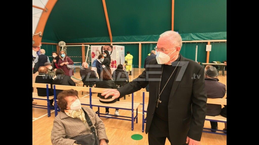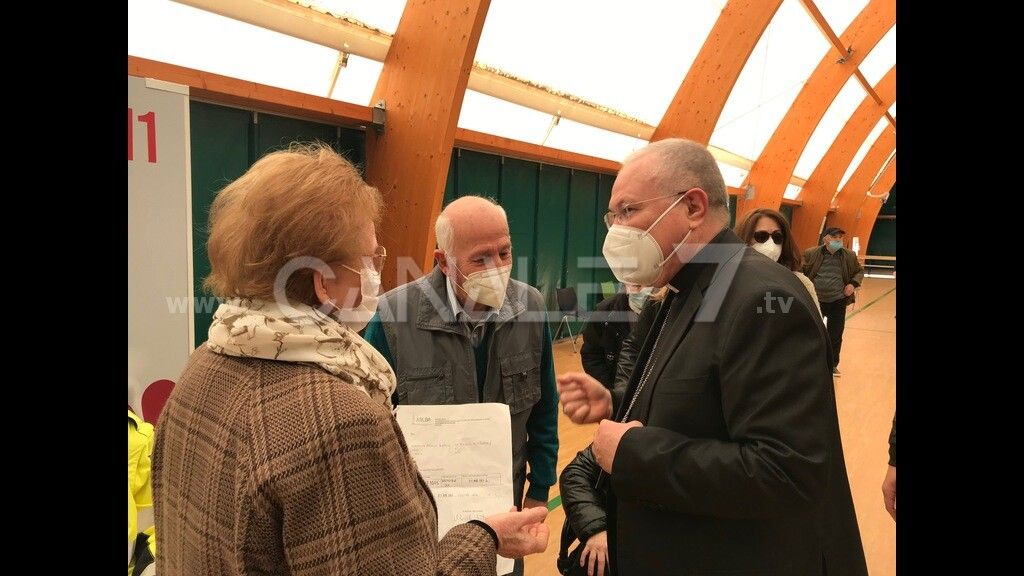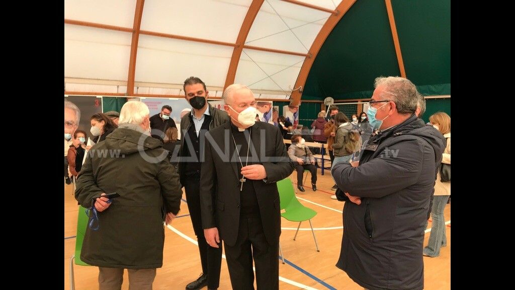 Monsignor Giuseppe Favale ha visitato questa mattina la sede delle vaccinazioni.