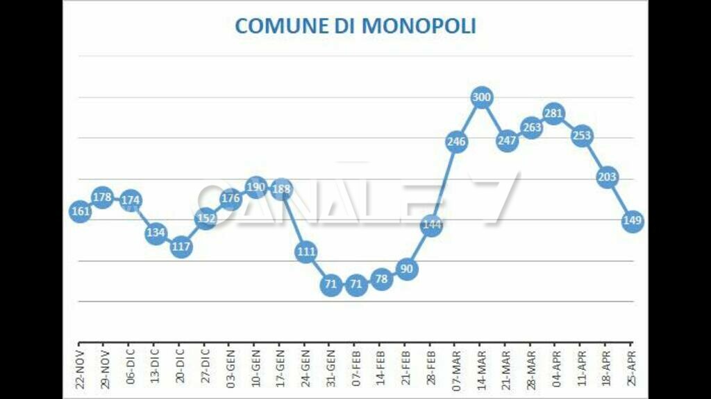 MONOPOLI – Dal suo profilo Facebook il sindaco, Angelo Annese ha fatto il punto contagi Covid in città: “ I positivi al Covid sono 149, 82 donne e 67 uomini.