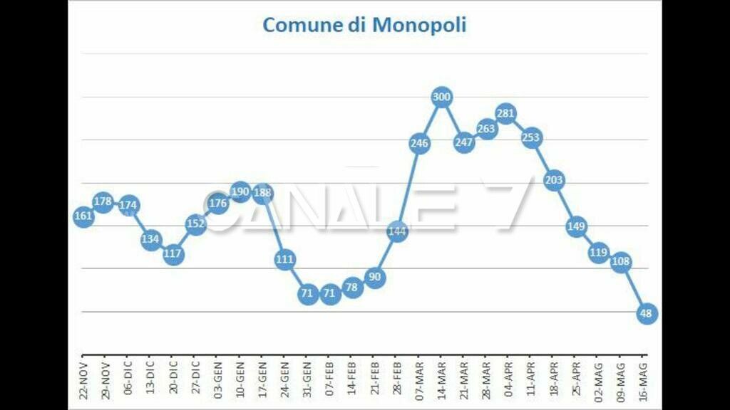 Deciso calo di casi da Covid a Monopoli. Il sindaco Angelo Annese, che nel fine settimana scorso aveva detto che in città i positivi erano 76, ieri ha annunciato che i casi si sono ulteriormente ridotti a 48, Si tratta di 31 donne e 17 uomini. L’età media dei contagiati è di 45 anni. In notevole calo anche i cittadini in isolamento: sono 34.Non c’è che dire un bel progresso, se si pensa che solo qualche settimana fa, a Monopoli si era abbondantemente oltre le due-trecento unità. Insomma è dallo scorso autunno, come del resto in tutta Italia, che i numeri della pandemia sono così favorevoli. “ Questi numeri ci lasciano ben sperare- ha detto il sindaco - Comunque teniamo sempre gli occhi aperti e rispettiamo le regole”. Regole che dovrebbero essere ormai scolpite nella mente di ognuno di noi. Prima di tutto l’uso della mascherina, il distanziamento di almeno un metro e l’igiene delle mani. E poi c’è la solita raccomandazione di non assembrarsi.