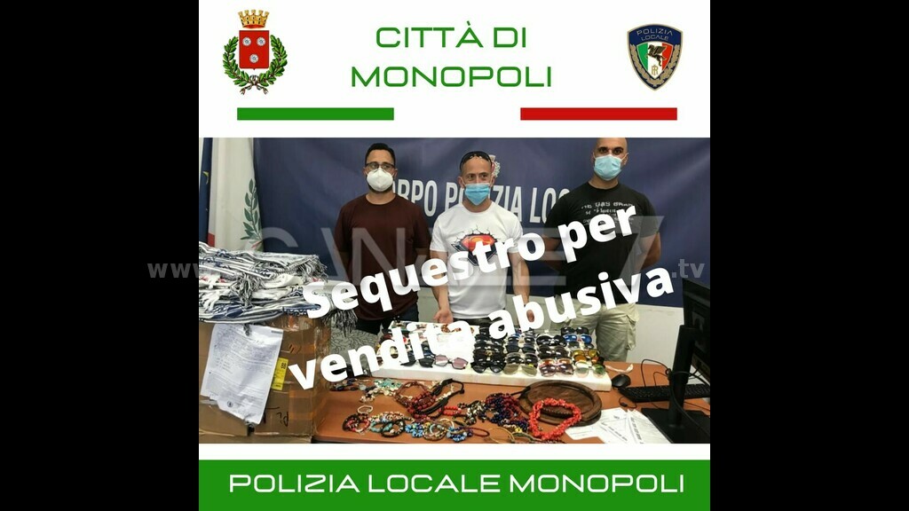 “ Sono anche questi i controlli avviati al personale di Polizia Locale – spiega il Comandante Michele Cassano – che descrive i dettagli di una operazione di servizio svolta da Ufficiali ed Agenti del Corpo che questa mattina, in abiti civili, hanno perlustrato diverse spiagge della litoranea monopolitana nonché aree del centro storico. Il servizio antiabusivismo - afferma il Comandante Cassano – è finalizzato non solo al rispetto delle norme nazionali e regionali in materia di commercio, ma soprattutto a tutelare i titolari di attività commerciale danneggiati, oggigiorno, dalla vendita selvaggia di capi ed accessori “spacciati” per griffati. Nel corso della mattinata sono stati effettuati n. 3 sequestri di natura amministrativa a carico di soggetti privi dell’autorizzazione di vendita in forma itinerante; bracciali, occhiali, magliette collane e borse costituiscono l’insieme di oltre cento pezzi venduti in forma illegale . A ciascun venditore abusivo è stata comminata una sanzione amministrativa di euro cinquemila per un totale di quindicimila euro ed inoltre gli è stato notificato anche un ordine di allontanamento previsto dagli artt. 9 e 10 del DL del 20/02/2017 convertito dalla Legge n. 47/2011 (meglio conosciuta come Legge sulla Sicurezza Urbana). Ricordiamo- spiega il Comandante Cassano - che nell’ordine di allontanamento si dà espresso avviso al trasgressore di allontanarsi dal luogo ove è stato commesso l’illecito amministrativo per un tempo pari a 48 ore unitamente al pagamento di una sanzione amministrativa che va da un minimo di € 100 ad un massimo di € 300,00, dandone a seconda della gravità dell’infrazione e precisamente qualora ne possa derivare un pericolo per la sicurezza pubblica, comunicazione al Questore per le operazioni relative all’emissione del DASPO URBANO. I controlli, conclude il Comandante Cassano, saranno capillari e continuativi soprattutto nella fase estiva. Sempre nella giornata odierna una pattuglia di motociclisti in località Capitolo hanno intercettato un conducente di una moto di grossa cilindrata intento ad impennare il mezzo seminando paura tra gli astanti”.