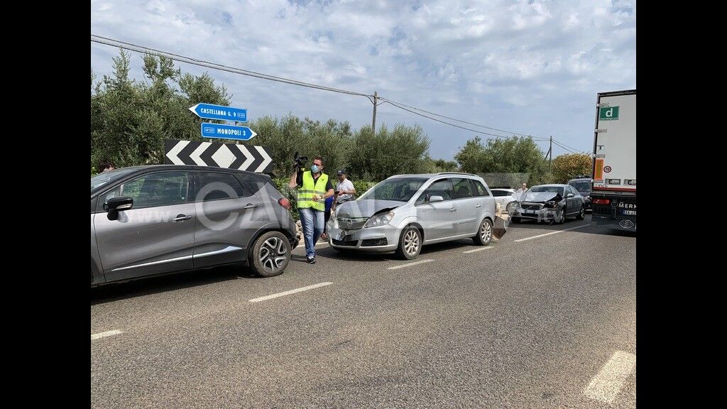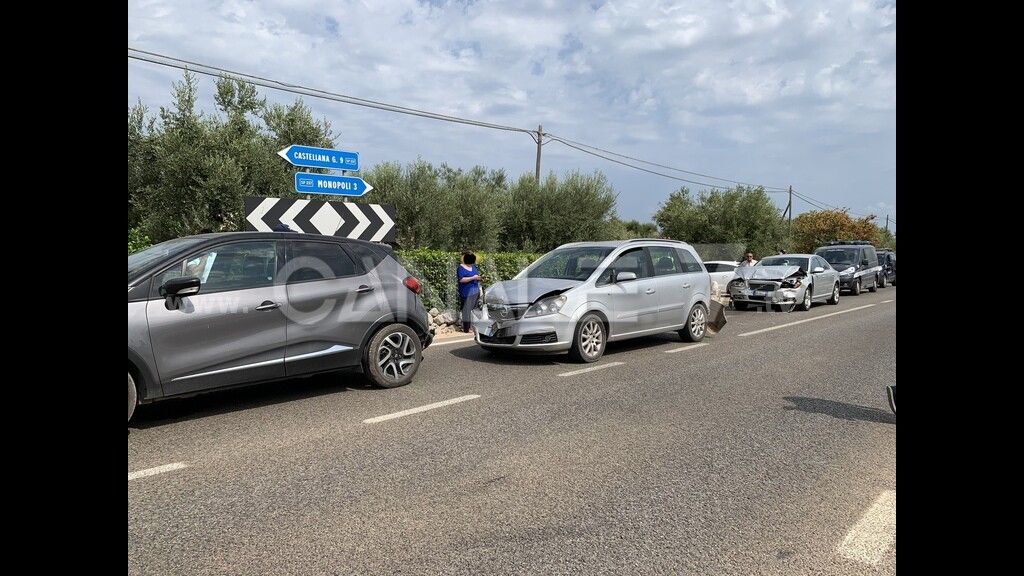 Anche in questa coda estiva non mancano gli incidenti stradali a causa dell’alto numero di veicoli che affollano le strade e le arterie più importanti del nostro territorio. Questa mattina infatti sulla strada provinciale Monopoli Castellana, si è verificato l’ennesimo sinistro. In pieno rettilineo appena fuori Monopoli, in direzione Castellana, un tamponamento a catena ha interessato tre veicoli. Una Renault Capture che pare fosse in procinto di imboccare una strada secondaria prospicente la strada provinciale, Una Opel Zafira ed una VOLVO. Sul posto è immediatamente intervenuta una pattuglia della Polizia Locale per eseguire i rilievi di rito. Sul luogo è arrivata anche una Ambulanza del 118. Due occupanti dei veicoli sono stati condotti in ospedale per accertamenti. Il traffico ha subito fisiologici rallentamenti su entrambe le direzioni in attesa della rimozione dei mezzi incidentati.