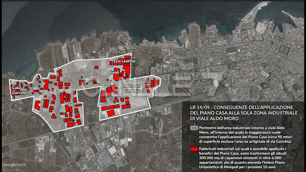 I piccoli opifici interclusi nei centri urbani e ormai dismessi da anni - per la trasformazione dei quali si è condivisa inizialmente, nel 2015, la necessità di modificare la legge per permettere il cambio di destinazione d’uso di un piccolo opificio col solo Piano Casa - non saranno più consentiti. Viceversa, resteranno in piedi le grandi speculazioni edilizie (si pensi soprattutto ai casi di Bari, Monopoli e Fasano) con l’unica penalizzazione, rispetto alle promesse iniziali, che dove si pensava di costruire 1.000 appartamenti se potranno realizzare “solo” 700. In altre parole, dove non si sarebbe dovuto costruire nulla, senza un preliminare piano di rigenerazione urbana, si potranno edificare ben 700 appartamenti con un semplice permesso di costruire!