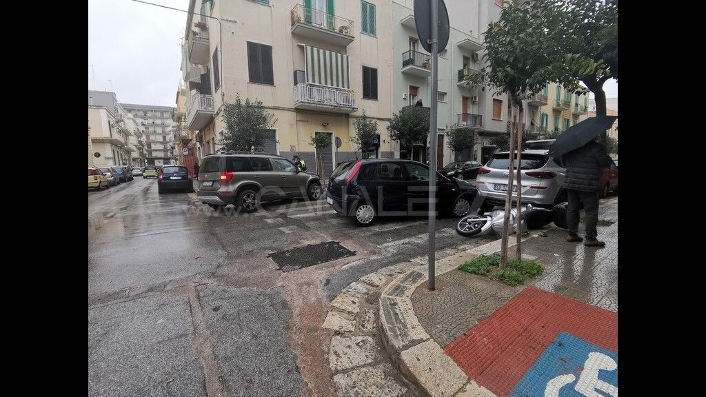 MONOPOLI - E' di un ferito il bilancio di un incidente stradale avvenuto questa mattina (lunedì 15 novembre) a Monopoli all'intersezione tra le vie Camicia e Contento. A scontrarsi una Skoda Yeti e un'Opel Corsa. Quest'ultima, dopo l'urto, ha travolto uno scooter parcheggiato regolarmente. Ad avere la peggio la conducente della Corsa, una donna di Monopoli, finita in ospedale ma non in gravi condizioni. Illeso il conducente dell'altro mezzo. Sul posto due pattuglie della Polizia Locale per i rilievi di rito e regolare il traffico.