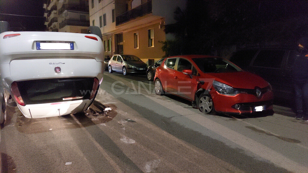 Spettacolare incidente questa notte in pieno centro a Monopoli. A scontrarsi, in via Martiri 16 marzo 1978, una Fiat Punto condotta da un giovane monopolitano e una Renault Clio alla cui guida vi era un giovane di Conversano. Nell’urto la Punto si è ribaltata. Leggere contusioni per i due conducenti. Quello della Punto è però risultato positivo sia all’alcoltest che a sostanze stupefacenti. Sul posto si sono portati anche i vigili del fuoco del Distaccamento di Monopoli che hanno messo in sicurezza l’area. I rilievi di rito sono stati effettuati da una pattuglia dei carabinieri del nucleo operativo e radiomobile della Compagnia di Monopoli che nei prossimi giorni segnaleranno la positività del monopolitano all’autorità giudiziaria che prenderà i provvedimenti del caso. Rischia il ritiro della patente. Leggermente danneggiate anche delle auto regolarmente in sosta.