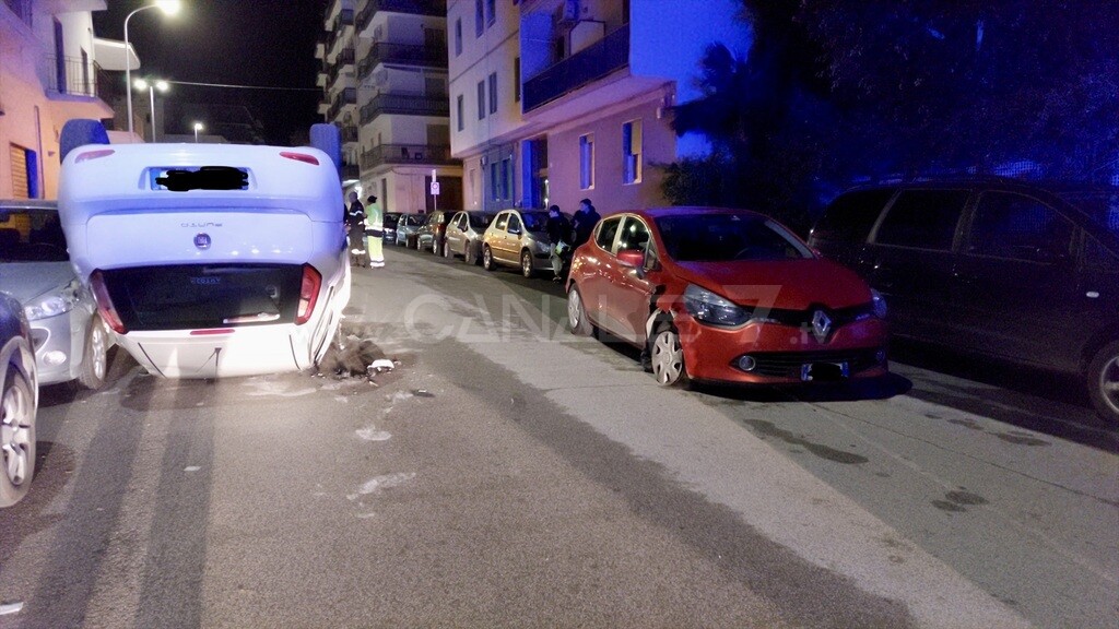 Spettacolare incidente questa notte in pieno centro a Monopoli.