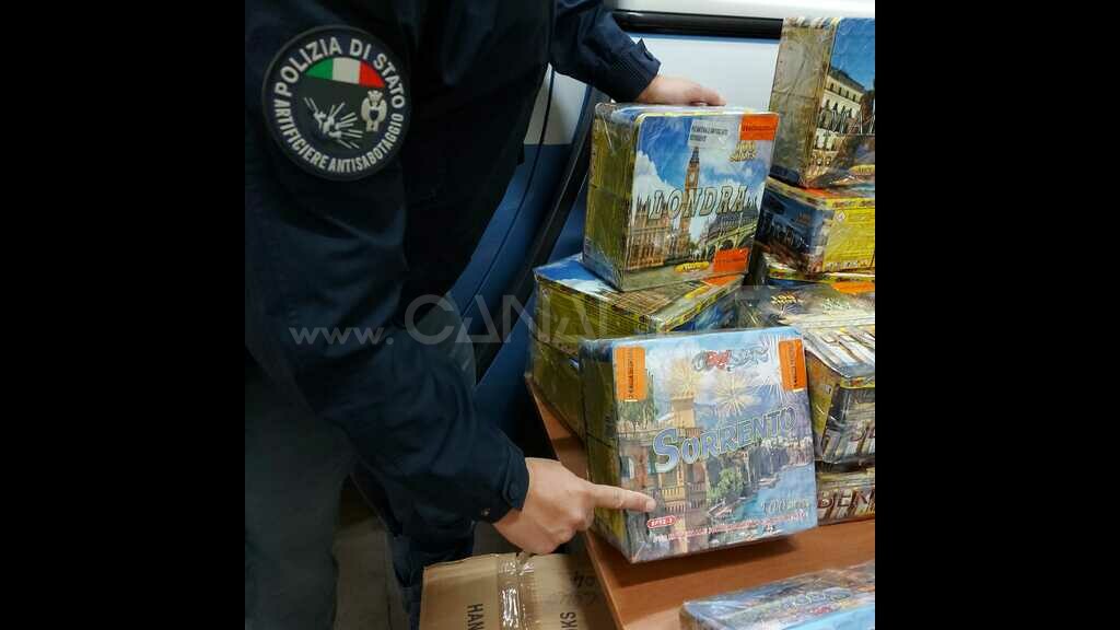 I poliziotti di un team della Squadra artificieri, con quelli della volante di zona e di un team dell’Unità Cinofila, hanno effettuato una perquisizione domiciliare presso l’abitazione del giovane barese, che ha consentito di rinvenire e sequestrare fuochi pirotecnici categoria F4, ritenuti illegali e pericolosi, per un peso complessivo di 23 kg.