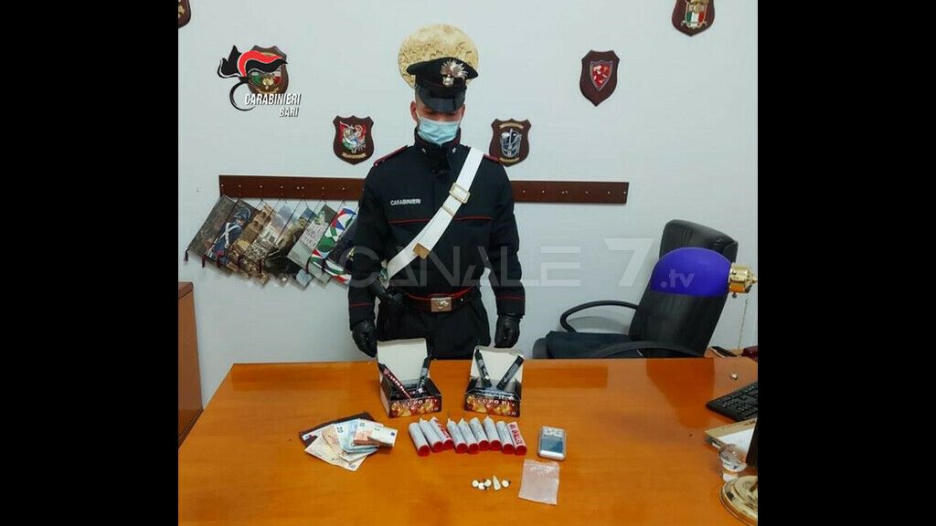 A Bitetto, lo scorso pomeriggio, i Carabinieri della locale Stazione unitamente a quelli della Sezione Radiomobile della Compagnia di Modugno, nel transitare per la centralissima via Beato Giacomo, hanno udito una forte esplosione. Scesi immediatamente dalle autovetture sono riusciti a bloccare un giovane, impedendogli di darsi alla fuga. Identificato e perquisito lo stesso è stato trovato in possesso n. 9 petardi di Cat. F4, non di libera vendita, n. 19 petardi di Cat. P1, nonché di 5 dosi di cocaina del peso complessivo di 3 grammi, e la somma di 155 euro in contanti. A quel punto inevitabilmente è scattata la perquisizione presso la sua abitazione ove i militari hanno trovato un bilancino di precisione.