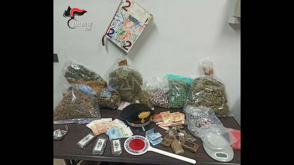 Ieri pomeriggio, i militari, impegnati nel controllo del territorio nei pressi del centro commerciale di Japigia, hanno sottoposto a controllo un’autovettura sulla quale viaggiavano i due giovani. All’esito dell’accertamento, il 26enne, seduto sul lato passeggero della macchina, è risultato in possesso di 7.880 € in contanti suddivisi in mazzette, 2 frammenti di hashish per un peso complessivo di 3 grammi circa e appunti manoscritti relativi a verosimili compravendite di droga, tutto custodito in un marsupio che portava indosso. Tali evidenze hanno convinto i Carabinieri ad approfondire il controllo anche con perquisizioni domiciliari presso le abitazioni dei due fermati. A casa del 25enne, i militari hanno rinvenuto diverse buste in cellophane contenenti circa 3,8 kg lordi di marijuana, nonché 6 panetti, 200 ovuli e 50 dosi di hashish, per un peso complessivo di 2,8 kg, oltre a un bilancino di precisione.
