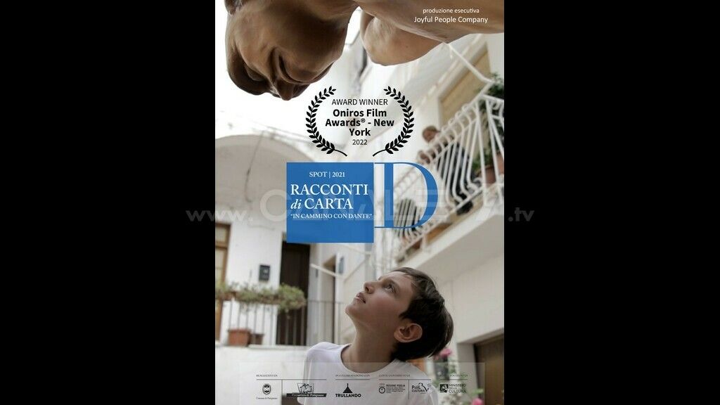 Si tratta del video racconto emozionale realizzato per il progetto “Racconti di Carta” che la scorsa estate ha animato il centro storico putignanese con le maestose opere in cartapesta degli artisti putignanesi. Il video ha conquistato la giuria tecnica che gli ha assegnato il premio come Miglior Spot Promozionale. Un riconoscimento che celebra ancora una volta il grande valore artistico della mostra a cielo aperto realizzata a Putignano nell’estate 2021, a cui ha offerto un interessante e suggestivo punto di osservazione il lavoro ideato e diretto della Joyful People Company, con la regia di Marika Ramunno e Jean Paul Stanisci. Nel video, anche la voce di Dino Parrotta, attore e direttore artistico della mostra “Racconti di Carta”, che ha tessuto attraverso le terzine della Divina Commedia il filo conduttore narrativo del video costruito attorno ad un piccolo protagonista, Giuseppe Capriglia, che va alla scoperta del mondo dantesco.