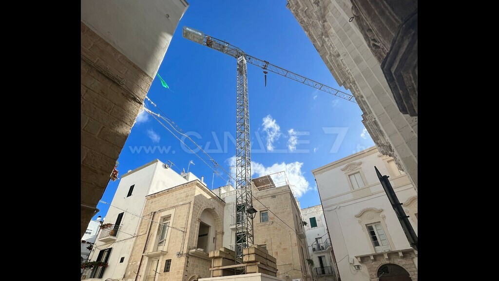 MONOPOLI - Il mistero della gru abbandonata. Non è il titolo di un film horror ma una vicenda che riguarda il centro storico di Monopoli. Siamo esattamente in largo San Leonardo, davanti all’omonima e caratteristica chiesa. Per restaurare un palazzo, tanti mesi fa, è stata installata una mega gru che di fatto occupa gran parte del largo e imbruttisce uno degli scorci più belli del centro antico monopolitano. Ma questo è secondario perché i residenti, che hanno segnalato alla nostra redazione il problema, hanno paura. In questi giorni di forte vento la struttura, molto alta, si muove parecchio nonostante sia ben fissata. Di notte, nel silenzio, lo scricchiolio è così forte da disturbare il sonno del vicinato. “Abbiamo timori anche per il basolato che nuovo certo non è” sottolineano i residenti. Gli operai che all’epoca hanno montato la gru hanno lavorato all’esterno del palazzo ma una volta completata questa fase, dicono i residenti, hanno sospeso tutto e da mesi nessuno mette piede. Da nostre verifiche, comunque, abbiamo appurato che la ditta ha tutti i permessi in regola, compreso quello della gru, che scadrà il prossimo 23 marzo. I lavori vanno a fasi alterne in quanto bisogna sistematicamente relazionare alla Sovrintendenza e questo rallenta tutto. Comunque proprio la ditta che sta effettuando i lavori invierà dei tecnici sul posto per valutare la staticità della gru e casomai intervenire per la messa in sicurezza.