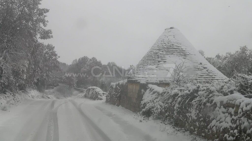Le basse temperature hanno determinato una fitta nevicata sulle colline del Barese