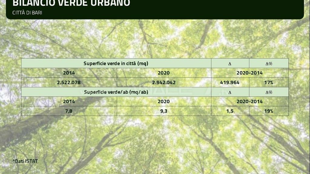 “Siamo orgogliosi di questo riconoscimento di Legambiente Puglia che, partendo da una serie di quesiti sul piano di monitoraggio e gestione del verde, sull’organizzazione del lavoro di manutenzione e sulla relativa comunicazione ai cittadini, oggi ci vede tra le realtà pugliesi più attive sul fronte dell’incremento e la cura del verde pubblico - commenta Galasso -. Stamattina abbiamo avuto modo di raccontare al pubblico in sala cosa è accaduto nella città di Bari negli ultimi anni, elencando le diverse trasformazioni a verde con la realizzazione dei nuovi parchi e giardini, ad esempio l’ex Rossani che sarà aperta al pubblico domenica prossima, gli interventi di greening lungo le strade e le attività di cantierizzazione per la bonifica di aree un tempo inquinate, quali l’ex Gasometro e l’ex Fibronit, che diventeranno grandi spazi verdi per il tempo libero e lo sport. È stata anche l’occasione per illustrare brevemente i grandi progetti in via di sviluppo, come la riqualificazione di Costa sud che cambierà letteralmente il volto di quell’area della città, rappresentando la sfida più importante dei prossimi anni”.