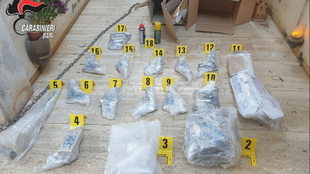 Un vero e proprio arsenale, composto da fucili mitragliatori e pistole complete di munizionamento erano nascosti in un loculo del cimitero di Terlizzi, avvolti nel cellophane e custoditi all’interno di cartoni. Ritrovato anche un ordigno di fattura artigianale. È quanto scoperto dai carabinieri della Tenenza di Terlizzi venerdì scorso.
