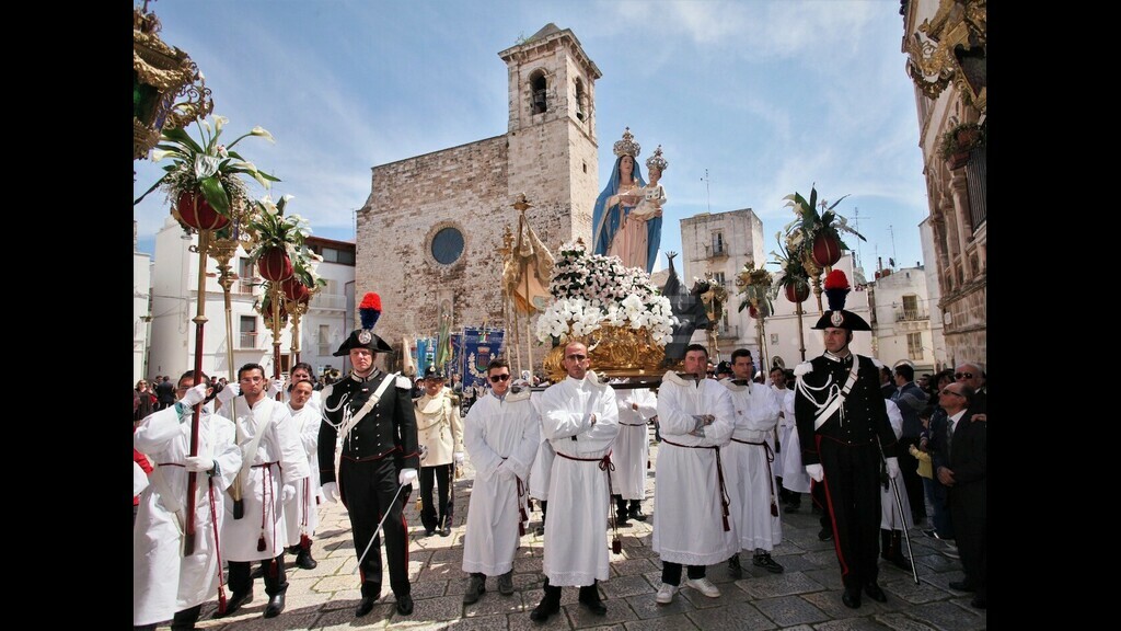 Dopo due anni di pandemia tornano in pompa magna a Castellana Grotte i festeggiamenti patronali in onore di Maria Santissima della Vetrana. I castellanesi sono legatissimi alla patrona, la cui intercessione permise di debellare la peste nel 1690. Evento che oggi anno viene ricordato l’11 gennaio con la tradizionale accensione delle Fanove, grandi cataste di legno che ricordano appunto la purificazione dalla peste. Diversi gli appuntamenti a partire da oggi. Alle 18.30 Santa Messa presso il Santuario della Madonna della Vetrana con processione di venuta in paese della Sacra Immagine. La Messa sarà rasmessa in diretta TV su Canale 7 (78 DT) e in diretta streaming sulla pagina Facebook del Comitato Festa Patria. Domani giornata clou delle celebrazioni. Alle 10.00 Solenne Pontificale presieduta da S. Ecc.Mons. Giuseppe Favale, Vescovo della Diocesi Conversano-Monopoli presso la Chiesa San Leone Magno con animazione della Schola Cantorum "don V. Vitti". Anche quest’evento liturgico verrà trasmesso in diretta TV da Canale 7. “Processione di Gala”. L’importante evento, che riprende dopo due anni per l’emergenza sanitaria, avviene nell’ultima domenica di aprile. Esso rappresenta una memoria centenaria in cui la pietà popolare, la fede e la tradizione si coniugano per dar vita ad una manifestazione unica e spettacolare. La processione si distingue da tutte le altre che si celebrano nel circondario,per il numero di statue che compone il fastoso e gioioso corteo che si snoda attraverso le principali vie cittadine. Per tributare onore e grazia alla Madonna della Vetrana, patrona di Castellana, sono ben 28 le icone che precedono la Sacra Effige, ciascuna delle quali racconta il martirio e la santità di chi ha dato la vita per Cristo. La processione di gala sarà commentata in diretta da studio.