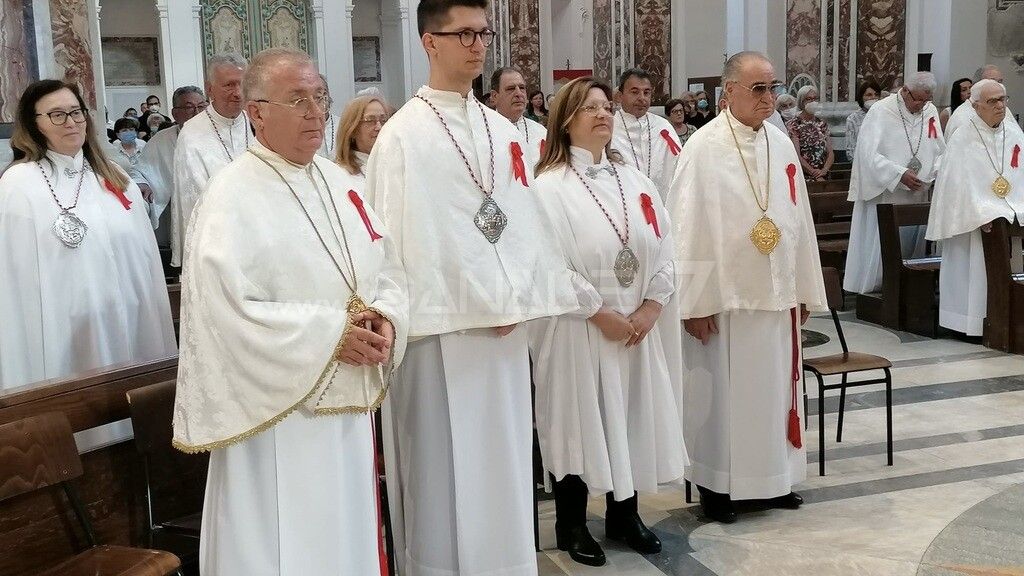 MONOPOLI. Oggi domenica 19 giugno 2022 la chiesa cattolica celebra il Corpus Domini. Questa mattina nella Santa Messa delle 7.30 presso la Basilica Cattedrale, la confraternita del Santissimo Sacramento ha accolto due nuovi confratelli: Fabrizio e Antonella. Al termine della liturgia foto di gruppo con il celebrante don Francesco. Stasera dopo la messa delle 18.30 la rituale e attesa processione per le vie cittadine ( con tutte le confraternite monopolitane) e clou in piazza Vittorio Emanuele dalle ore 19.00.