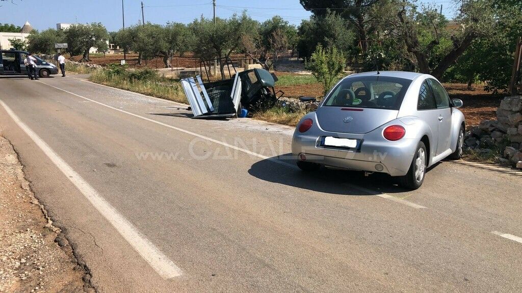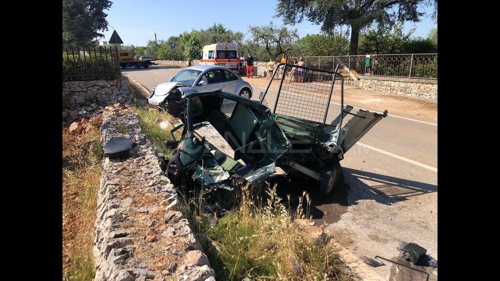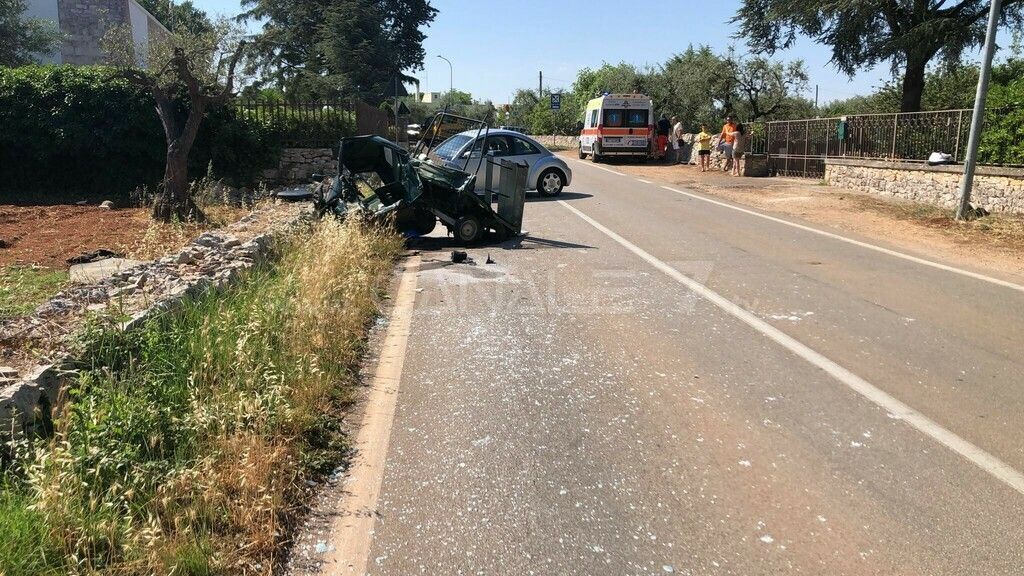 MONOPOLI - Incidente stradale questa mattina (domenica 19 giugno) in contrada Impalata a Monopoli, sulla provinciale 146. A scontrarsi un'Apecar su cui viaggiava un anziano monopolitano e una Volkswagen Maggiolino. L'urto è stato violentissimo tanto che l'Apecar è finito diversi metri lontano dal punto di impatto. Il mezzo è andato praticamente distrutto. Sul posto ambulanze del 118 che hanno provveduto a trasportare l'anziano all'ospedale "San Giacomo" di Monopoli e a curare sul posto gli occupanti dell'auto. I rilievi di rito sono stati effettuati dalla Polizia locale di Monopoli presente sul posto anche con il comandante Saverio Petroni.