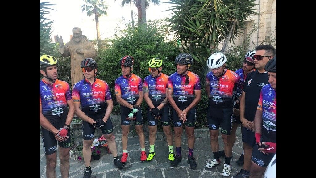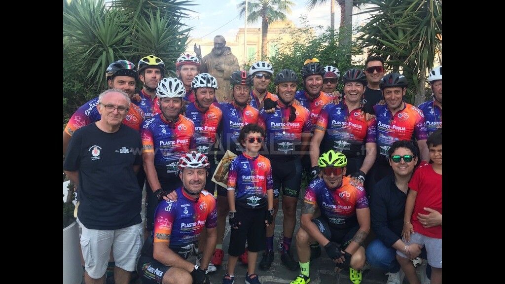 MONOPOLI – Hanno fatto ritorno oggi pomeriggio domenica 19 giugno, intorno alle 17.30, i ciclisti della Asd “In Bike Monopoli” che come ogni anno hanno raggiunto San Giovanni Rotondo (Fg) per rendere omaggio a Padre Pio. Il gruppo composto da 16 ciclisti, che era partito ieri mattina alle 5.00, ha percorso circa 370 km tra andata e ritorno. Erano partiti stamattina dal centro sul Gargano alle 9.00 circa. Il gruppo è composto dal capitano Gennaro Palmitessa e da Paolo Palmitessa, Carlo Scarano, Felice Munno, Romualdo Topputi, Francesco Perricci, Pasquale Di Leo, Gianni Sabatelli, Nico Amodio, Stefano Sportelli, Michele Lopedote, Gaetano Morè, Mimino Cavaliere, Gianni Cascione, Vito Rizzo e Cosimo Sportelli. Al rientro, statua di Padre Pio nei pressi della chiesa del Carmine, ad attenderli vi erano amici , parenti e l’Assessore allo Sport, Cristian Iaia, il quale ha consegnato loro una pergamena a nome dell’amministrazione comunale. Un servizio nel telegiornale.