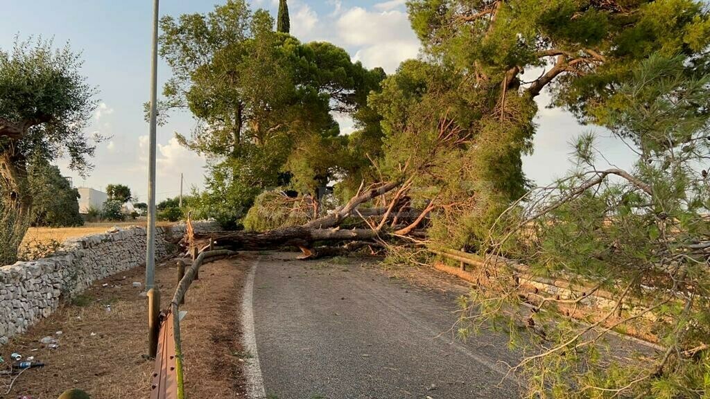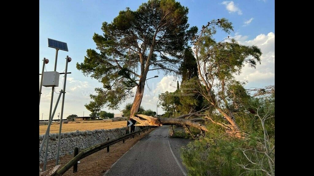 Il fenomeno è durato al massimo dieci minuti, ma decisamente intensi, come se il cielo volesse sfogarsi dopo settimane di caldo afoso. Qualcuno l'ha definita tromba d'aria; certamente si è trattato di vento fortissimo ed improvviso, misto ad acqua, che hanno letteralmente sradicato quattro alberi ed un palo dell'illuminazione, tagliando in due la carreggiata. E' accaduto nel pomeriggio sulla Provinciale che collega Castellana a Polignano, qualche centinaio di metri dopo la rotatoria di Triggianello. Per fortuna, al momento della caduta degli alberi e del palo dell'illuminazione, non c'erano auto in transito, altrimenti i danni sarebbero stati decisamente più rilevanti mettendo a rischio l'incolumità degli eventuali passeggeri. Qualche problema è stato registrato anche sulla Conversano-Castellana, in territorio di Conversano: anche in questo caso la caduta di un albero ha costretto alla chiusura provvisoria di un tratto della Provinciale.