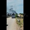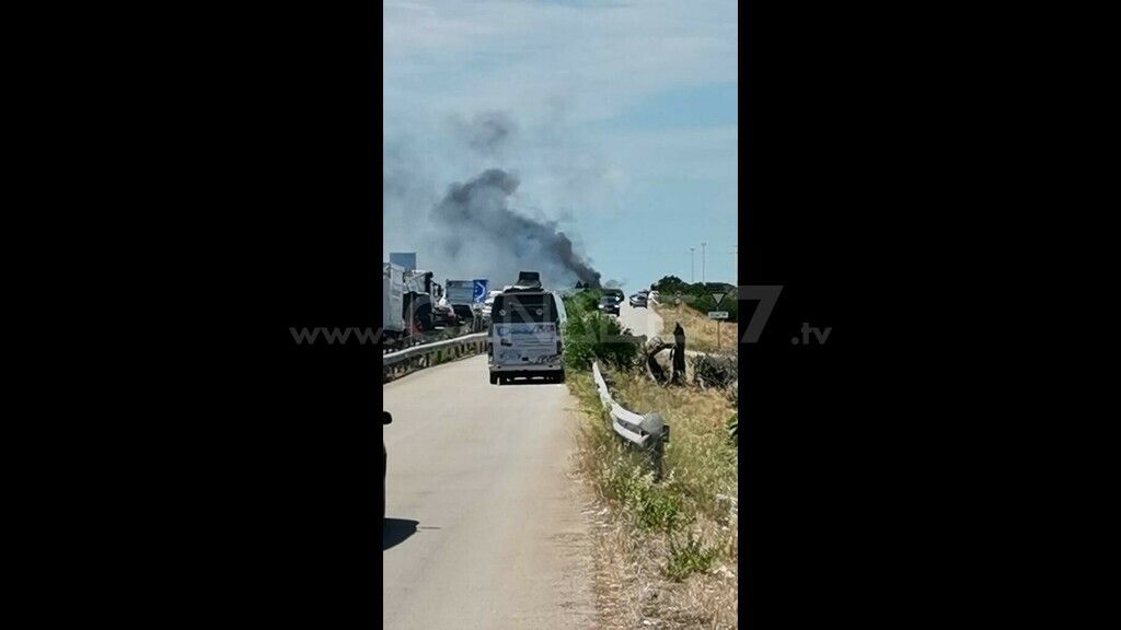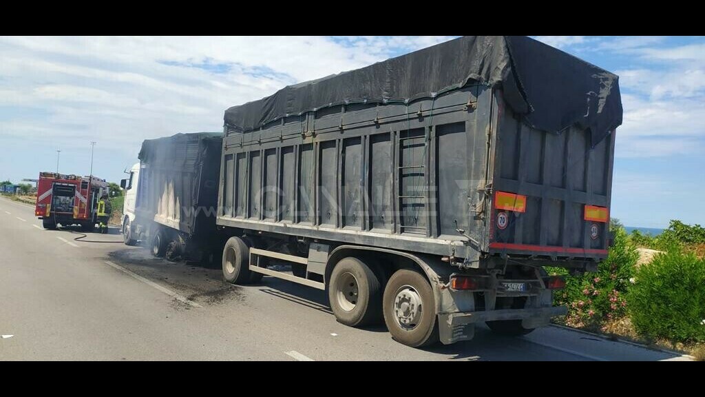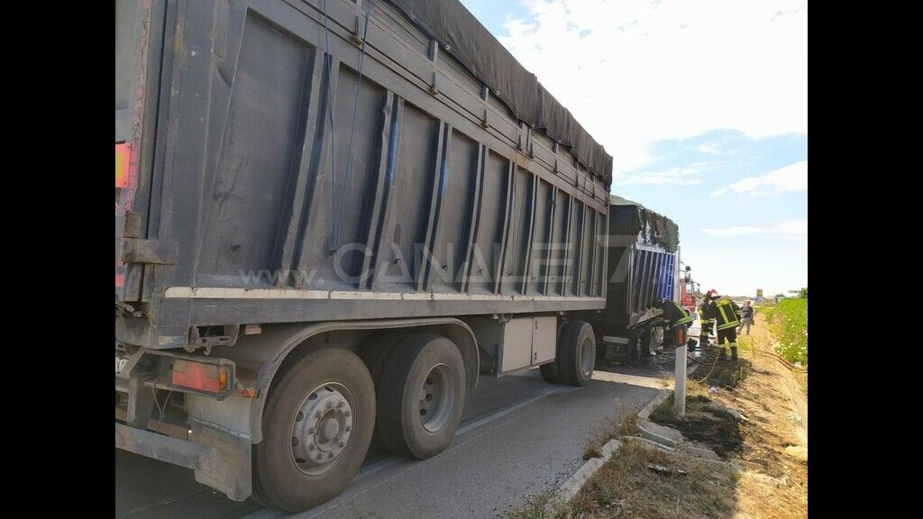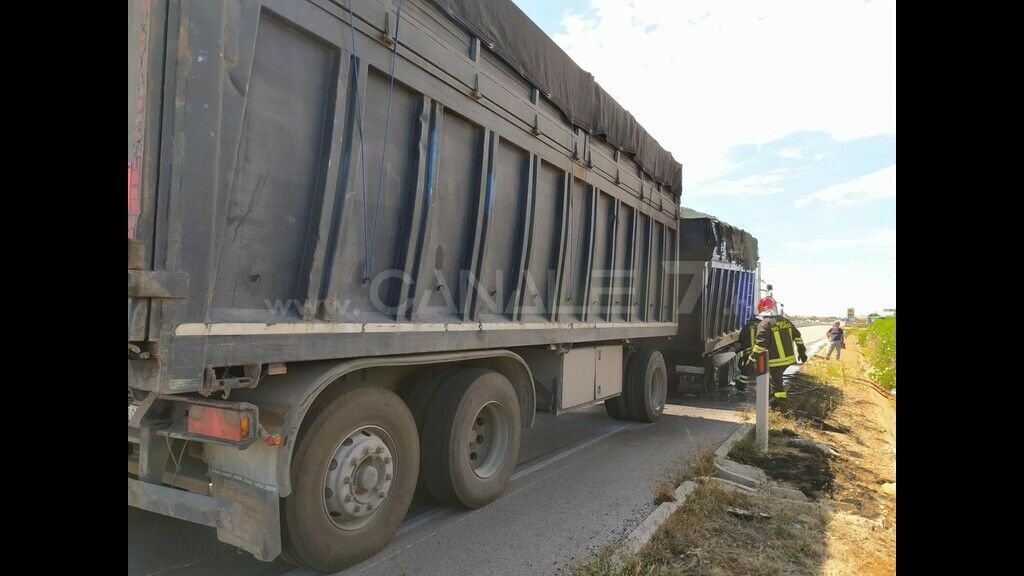 MONOPOLI - Primo pomeriggio di fuoco sulla Statale 16, direzione Bari, al confine tra i territori di Monopoli e Polignano a Mare. Un camion con tanto di rimorchio di una ditta di Andria che trasportava legna ha preso fuoco mentre era in marcia. Pare che a scatenare l'incendio le scintille provocate dallo scoppio di un pneumatico subito sotto la motrice. L'autista, accortosi di quello che stava accadendo, ha subito accostato nella prima piazzola di sosta lanciando l'allarme. Sul posto si sono portate immediatamente le squadre dei vigili del fuoco del distaccamento di Monopoli. Intanto la statale, per motivi di sicurezza, è stata bloccata al transito nelle vicinanze del mezzo incendiato. Ci sono voluti diversi minuti per spegnere le fiamme che hanno parzialmente distrutto il mezzo pesante. Illeso l'autista. Anche alcuni arbusti sulla complanare attigua sono andati a fuoco complicando ulteriormente il lavoro dei vigili del fuoco. Notevoli i disagi alla viabilità con code chilometriche che si sono formate sulla trafficata arteria. Si sono registrati anche alcuni tamponamenti per fortuna senza feriti ma che hanno ulteriormente rallentato il traffico. Anche sulle complanari si sono registrati disagi perché molti automobilisti le hanno imboccate per evitare la coda. Una volta spente le fiamme, comunque, la Statale è stata riaperta. Sul posto, per effettuare i rilievi di rito, i carabinieri del Nucleo operativo e radiomobile della Compagnia di Monopoli supportati da una volante della Polizia di Stato per la viabilità.
