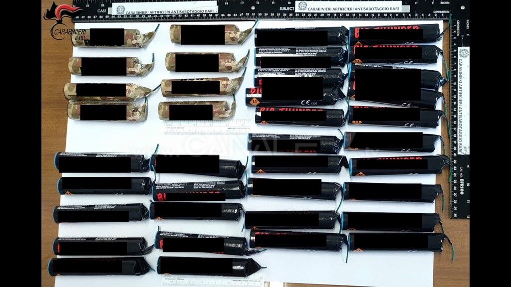 I Carabinieri del Comando Provinciale di Bari, durante un servizio predisposto nel contrasto del traffico di sostanze stupefacenti, con la collaborazione delle unità cinofile di Modugno, hanno rinvenuto in un’abitazione del centro urbano, 22 Kg. di “MARIJUANA” suddivisi in 21 confezioni in cellophane termosaldate, 38 candelotti esplodenti e 1 pistola a salve tipo revolver.