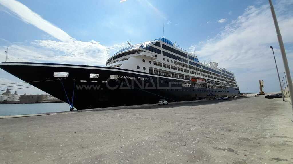 Ha attraccato ieri pomeriggio sabato 13 agosto 2022 a Monopoli la Azamara Journey, una delle navi gioiello della compagnia Azamara Club Cruises. Con una stazza di 30.277 tonnellate per 180 metri di lunghezza, è in grado di ospitare 676 passeggeri, con un equipaggio di 407 persone.