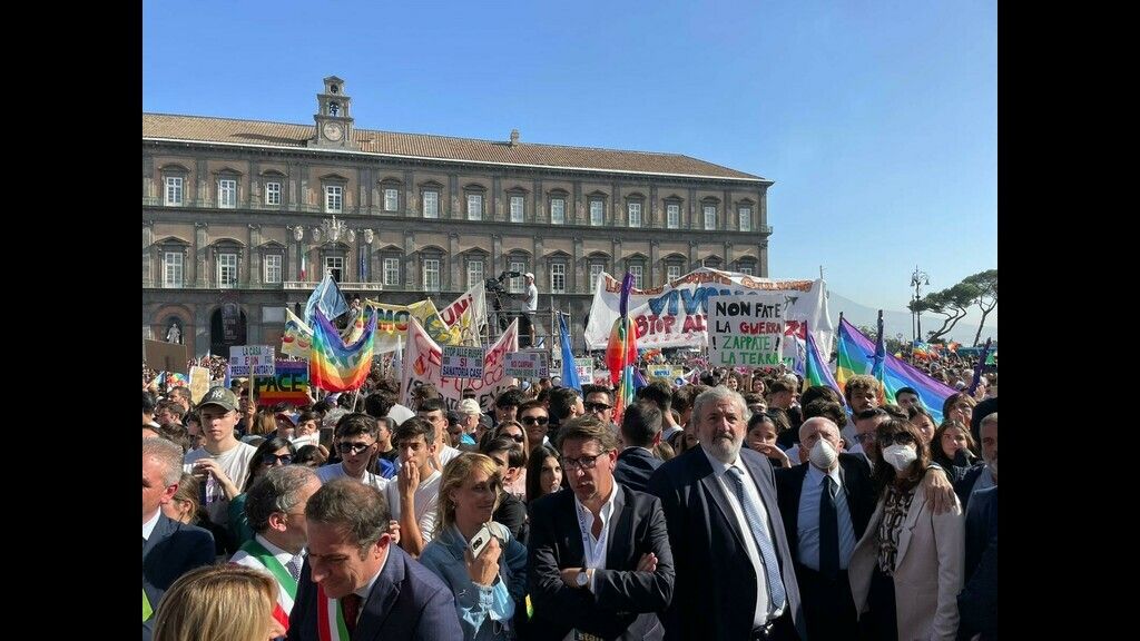 Il presidente della Regione Puglia Michele Emiliano si è recato quest’oggi, venerdì 28 ottobre, a Napoli per partecipare alla manifestazione per la Pace promossa dalla Regione Campania con l’adesione di molte associazioni e comitati cittadini. L’evento si è tenuto a partire dalle ore 11:00 in Piazza Plebiscito. Queste le parole del preesidente Emiliano sull'importanza della manifestazione: “Dobbiamo tutelare questa gente aggredita ma senza approfittare della situazione, per cambiare e migliorare il proprio posizionamento strategico e tattico. Questo va detto anche ai nostri alleati e all’Unione Europea - ha proseguito il presidente Emiliano - Perché una guerra è una guerra, è un rischio permanente. Qualunque tipo di strategia alternativa è un rischio troppo grave per essere corso. Questa manifestazione chiede il cessate il fuoco per cominciare immediatamente un percorso di pace, tutelando il popolo ucraino e dando per scontato il fatto che sia stato ingiustamente aggredito. Quello che non si può fare è far durare volutamente questa guerra il più possibile per avere altro tipo di vantaggi, diversi da quello della tutela del popolo ucraino”.