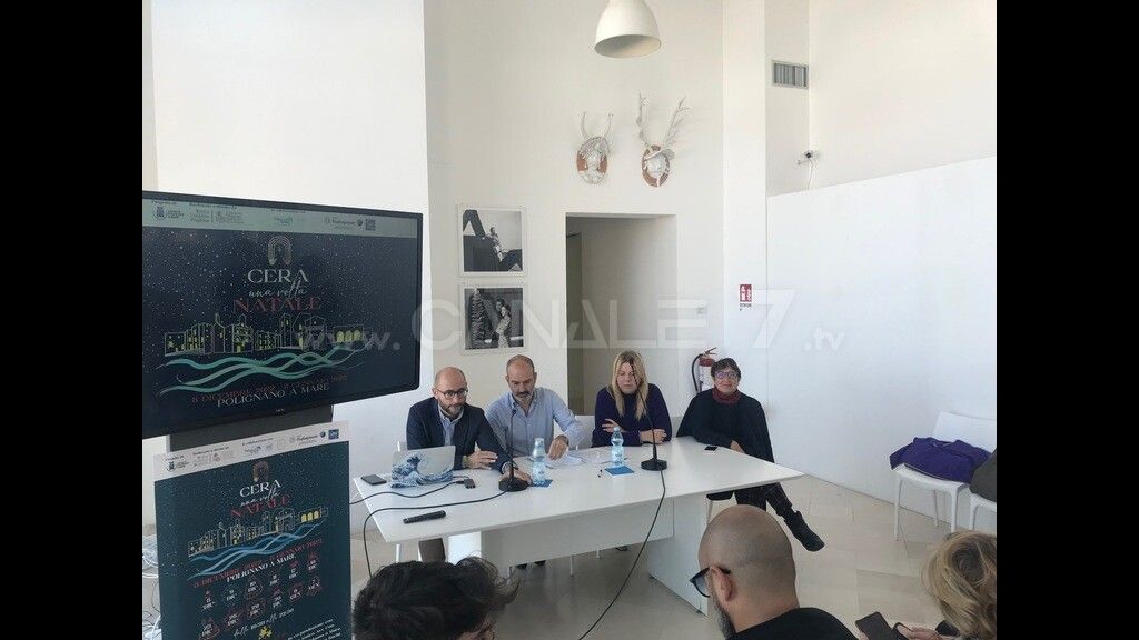 Presso il Museo Pino Pascali di Polignano a Mare si è svolta questa mattina la conferenza stampa di presentazione del progetto “Cera una volta... Natale” del Comune di Polignano, realizzato e diretto dal Teatro Pubblico Pugliese. Si tratta del cartellone delle iniziative natalizie polignanesi in programma dall’8 dicembre, festa dell’Immacolata, al 7 gennaio 2023, in cui i vari appuntamenti sono in via di programmazione e allestimento. Un servizio nel telegiornale.