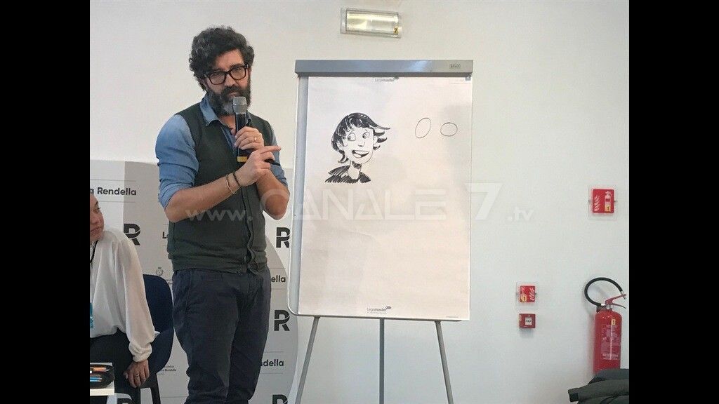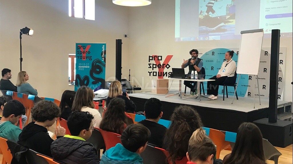 Prospero Young nella Rendella alla presenza di alunni della scuola media inferiore.