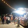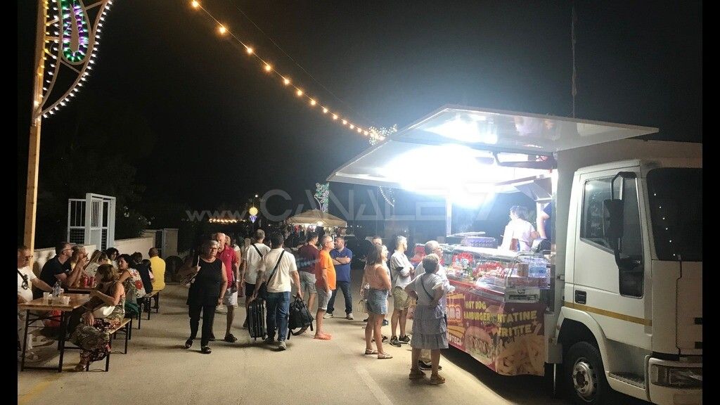 bancarelle di merci varie e stand per la produzione di panzerotti fritti e